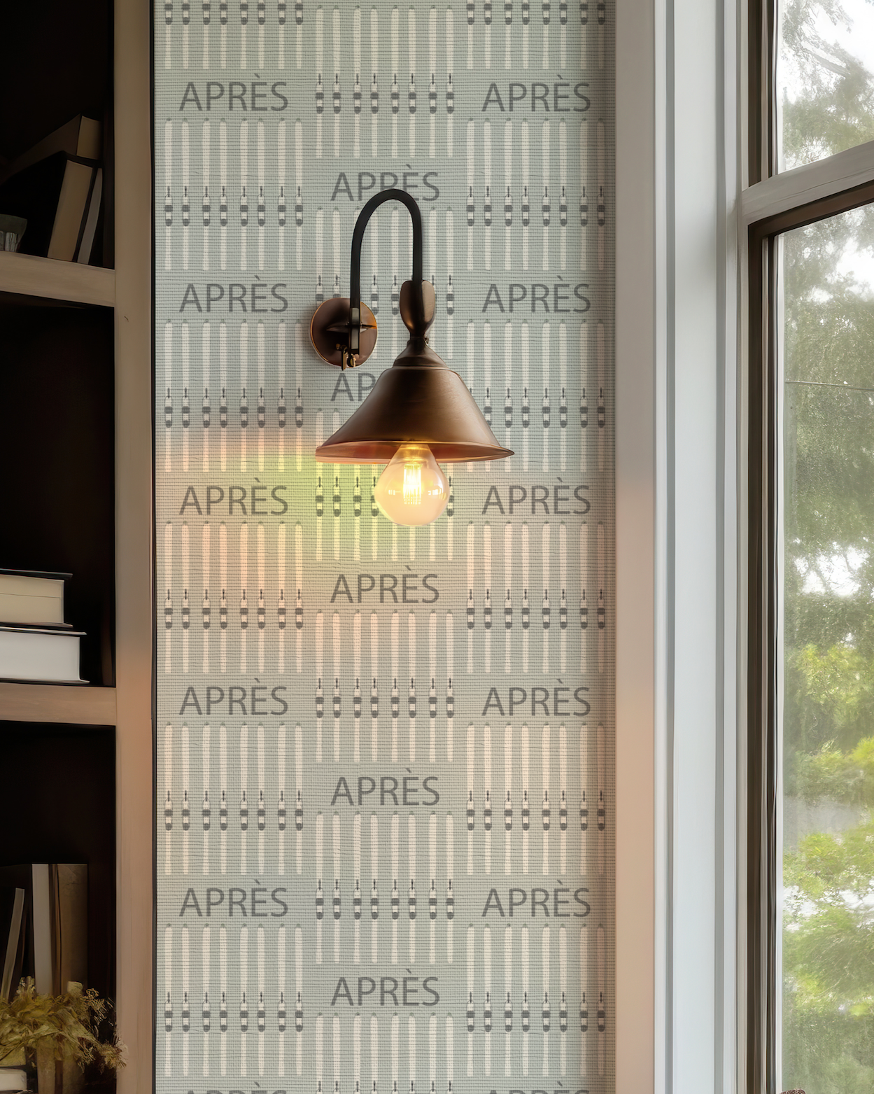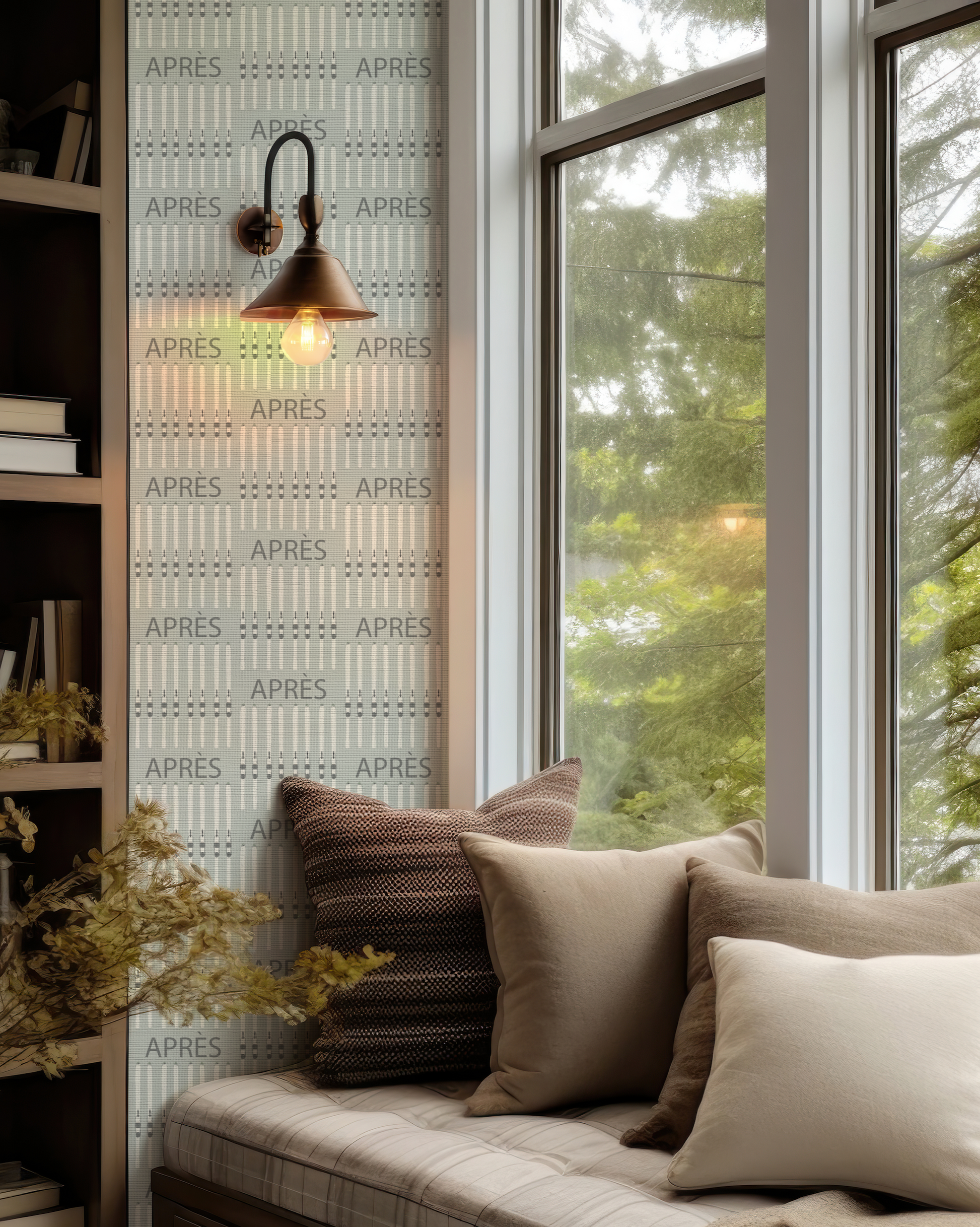 Bring a touch of mountain elegance to your space with our Après Ski wallpaper by Alpen Haus. This motif features hand-drawn skis in a geometric pattern printed on a lush sage green wallpaper for a warm yet contemporary look. It's accented with a well-beloved ski phrase in a modern typeface that catches the eye and invites the après joy to stay.