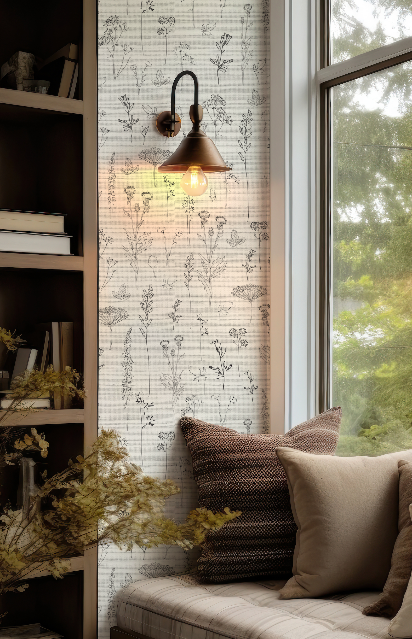 Transform any room with Nature Study on White Wallpaper. Crafted by Willow+Wild, this wallpaper features an eye-catching floral of off white and sublet black outlines against a white backdrop, creating a chic and stylish look that will bring a luxurious touch to your décor. Make a fresh statement with this stunning wallpaper!