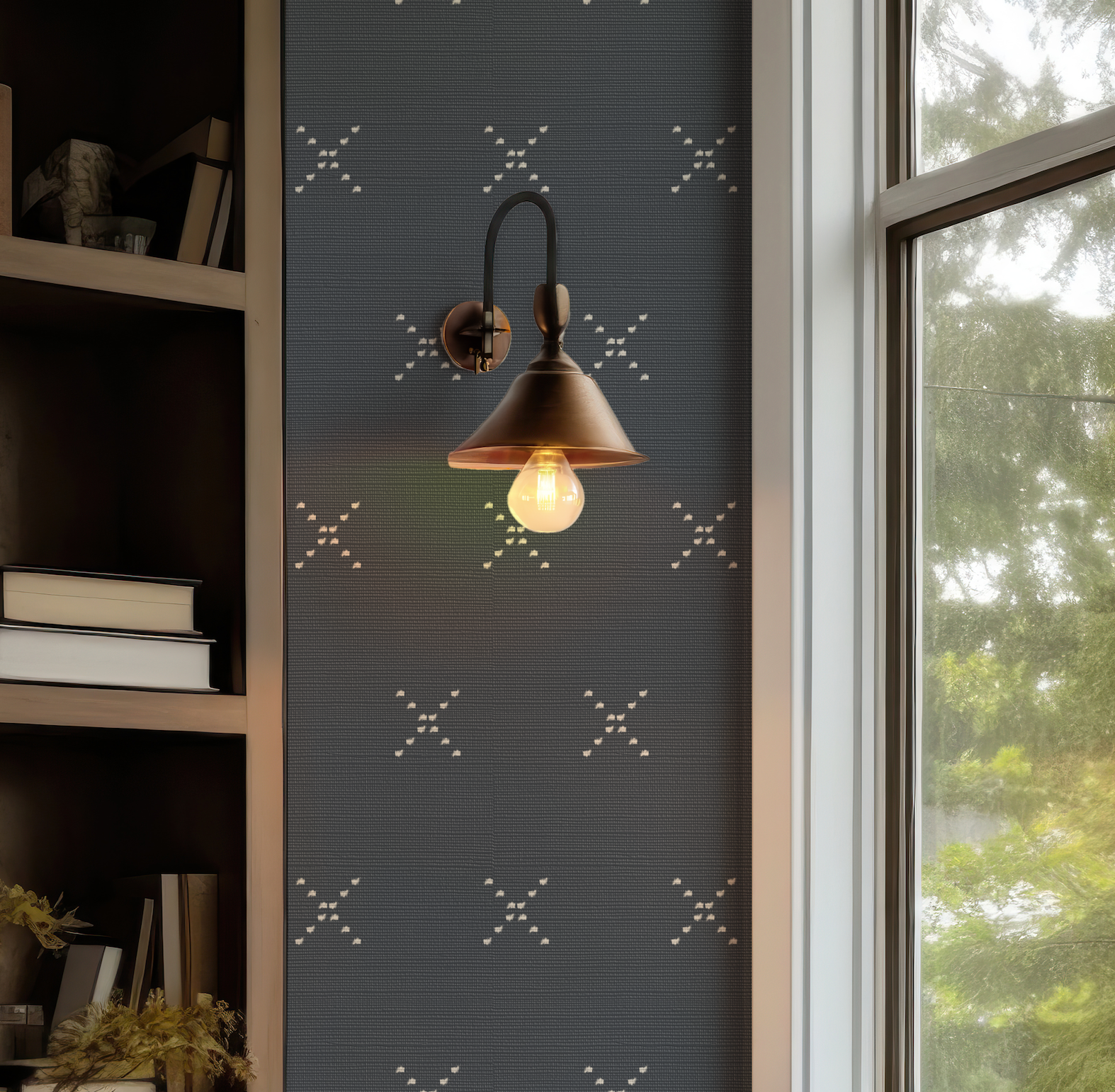 Transform your walls with this beautiful Navy Wallpaper with Small Dash X in Tan! Featuring a tan x pattern on a navy background, it's sure to warm up any room and create an inviting atmosphere. Make a statement with Willow + Wild!