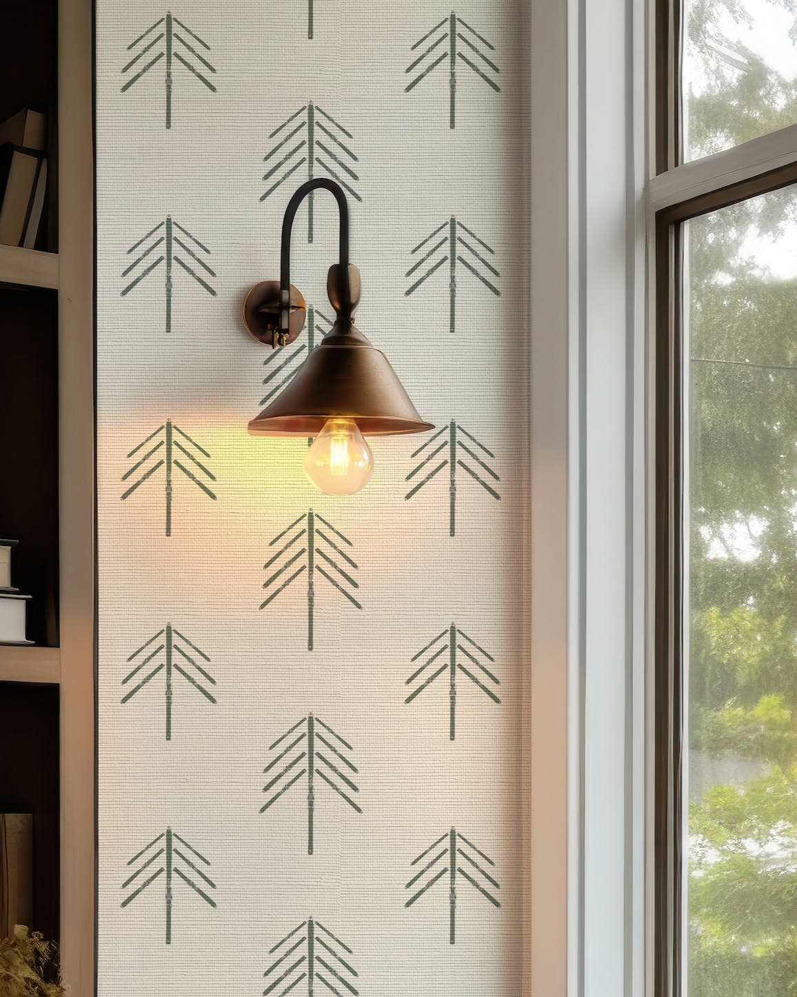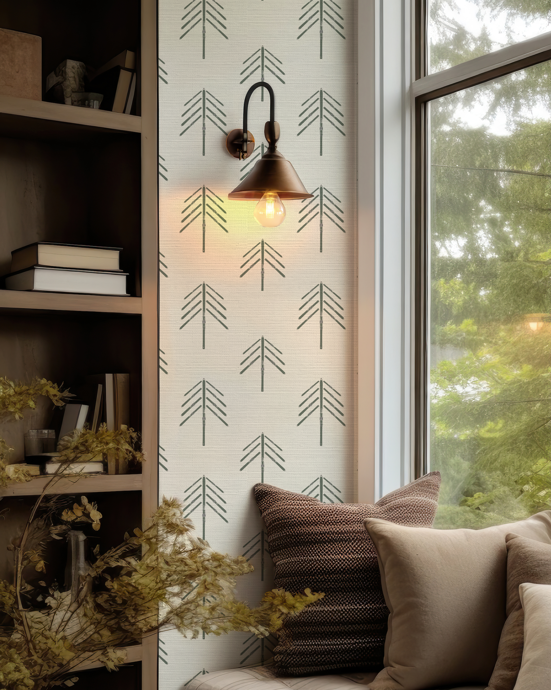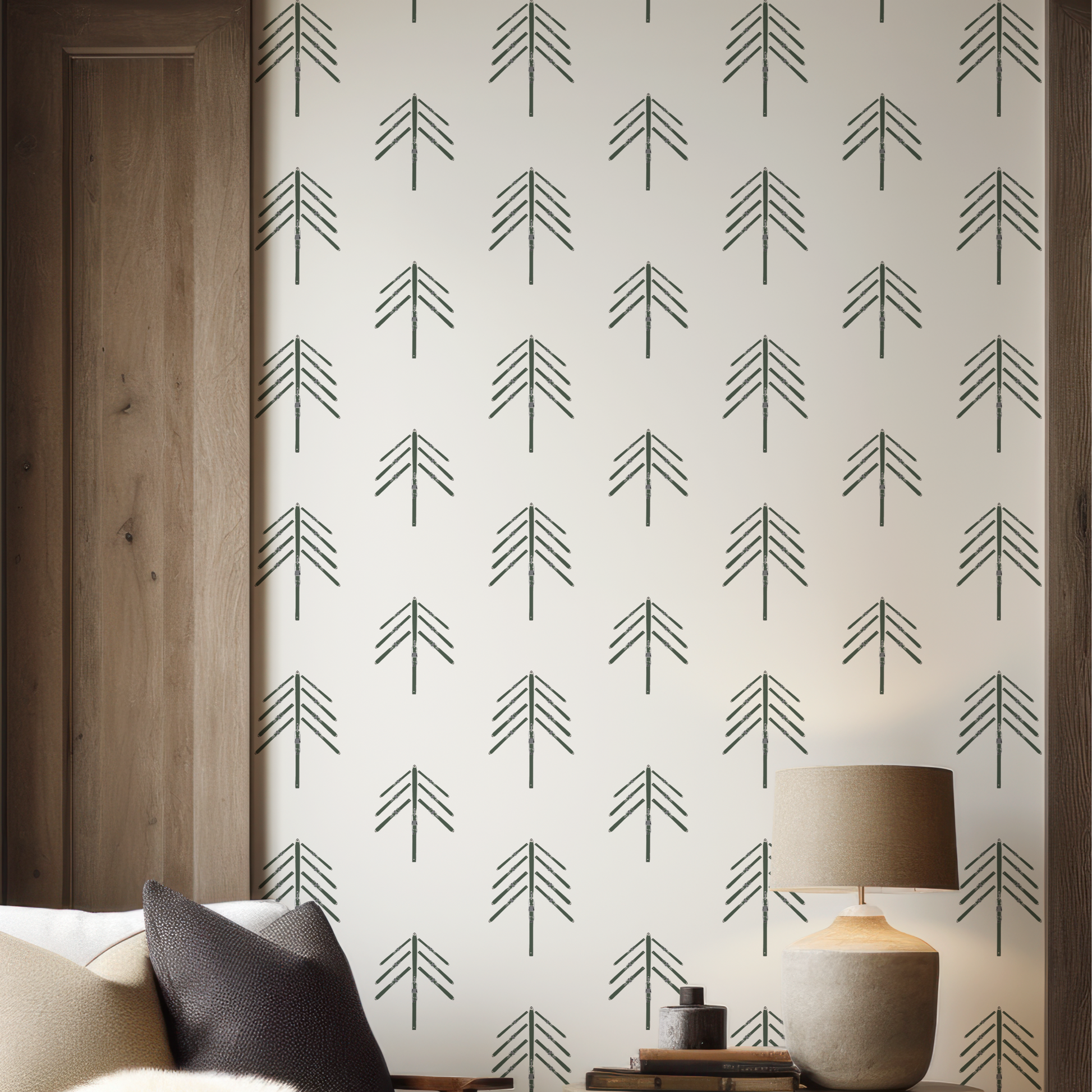 Experience an alpine-inspired retreat with Willow + Wild's Ski Tree Wallpaper LG. Enjoy eclectic fun mixed with mountain luxe, featuring green vintage ski trees. Smaller ski tree also available.