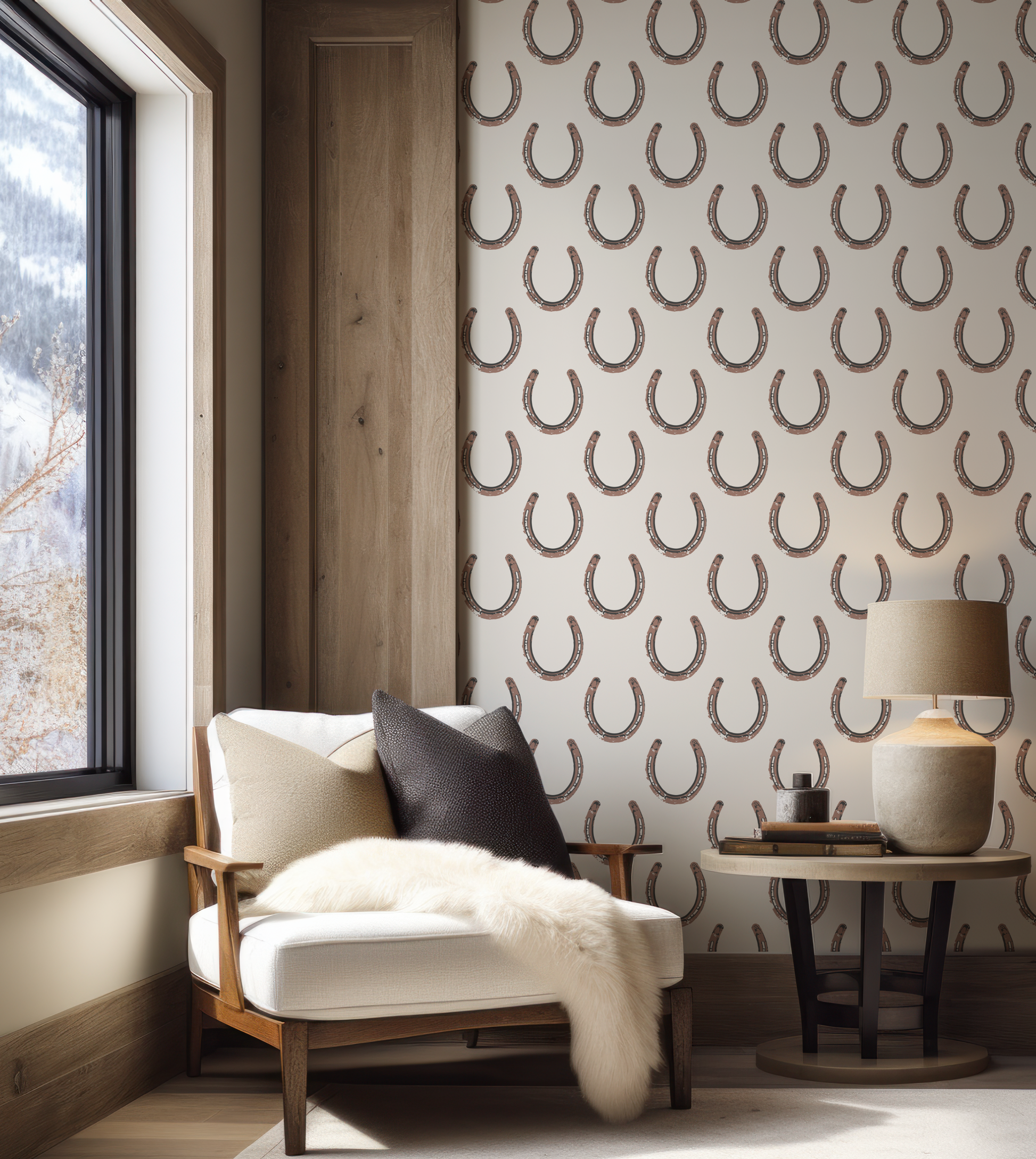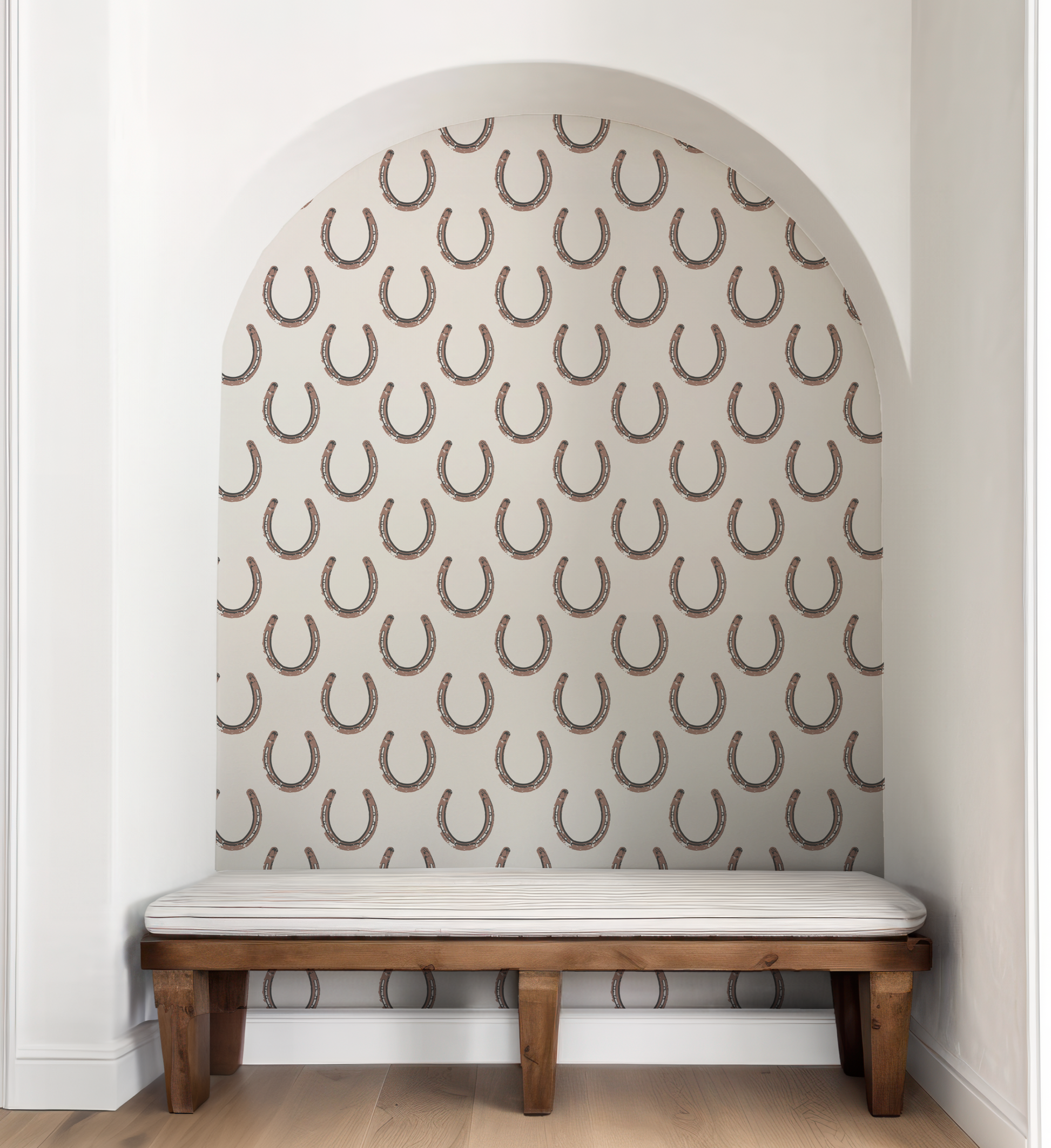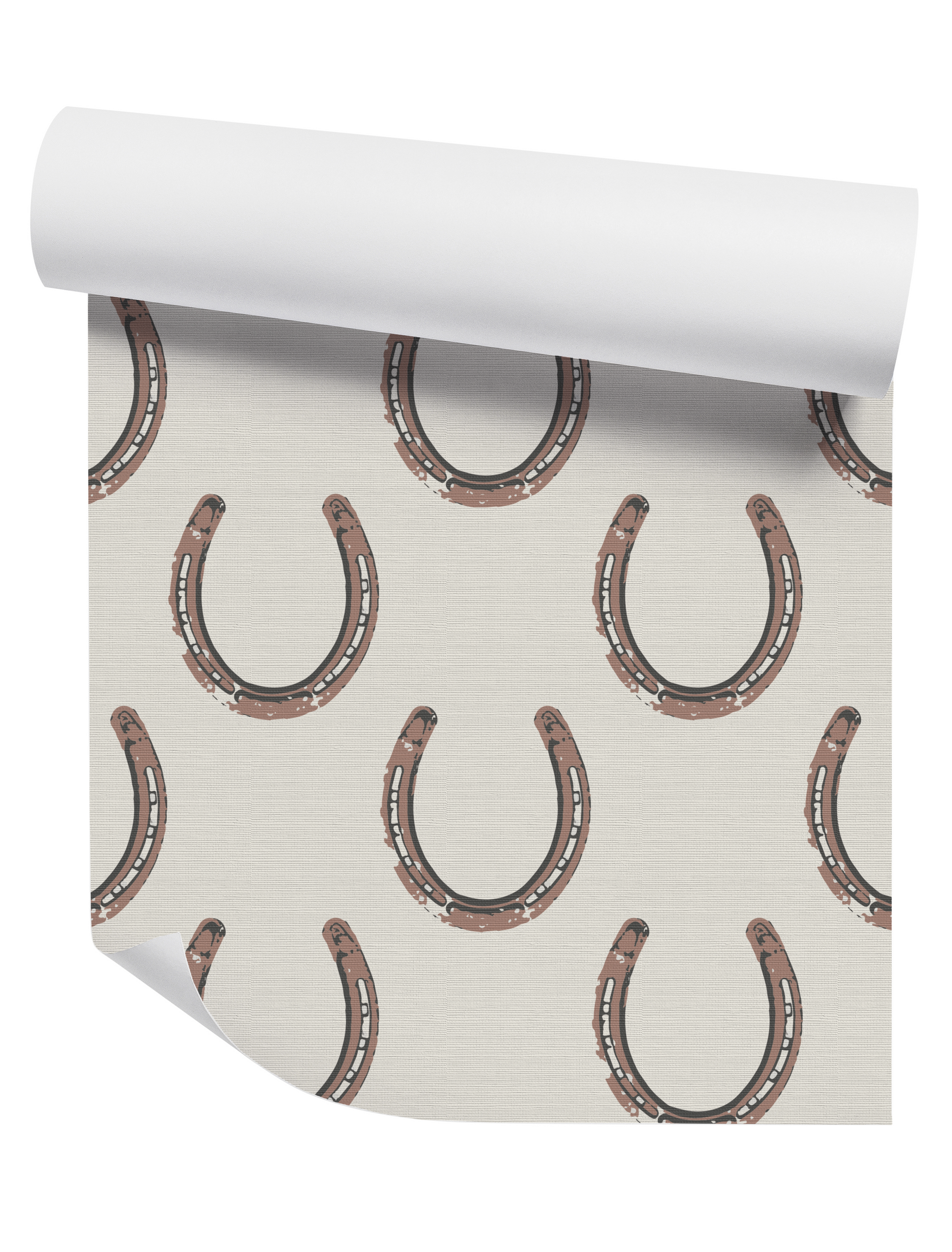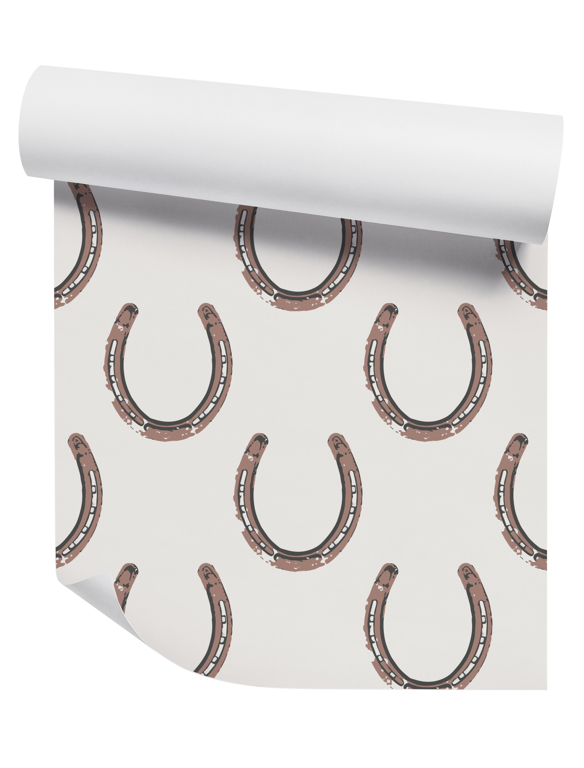 Transform any room with The Luckiest in Rusty on White Wallpaper. Crafted by Willow+Wild, this wallpaper features an eye-catching horseshoe of tans against a white backdrop, creating a chic and stylish look that will bring a luxurious touch to your décor. Make a bold statement with this stunning wallpaper!